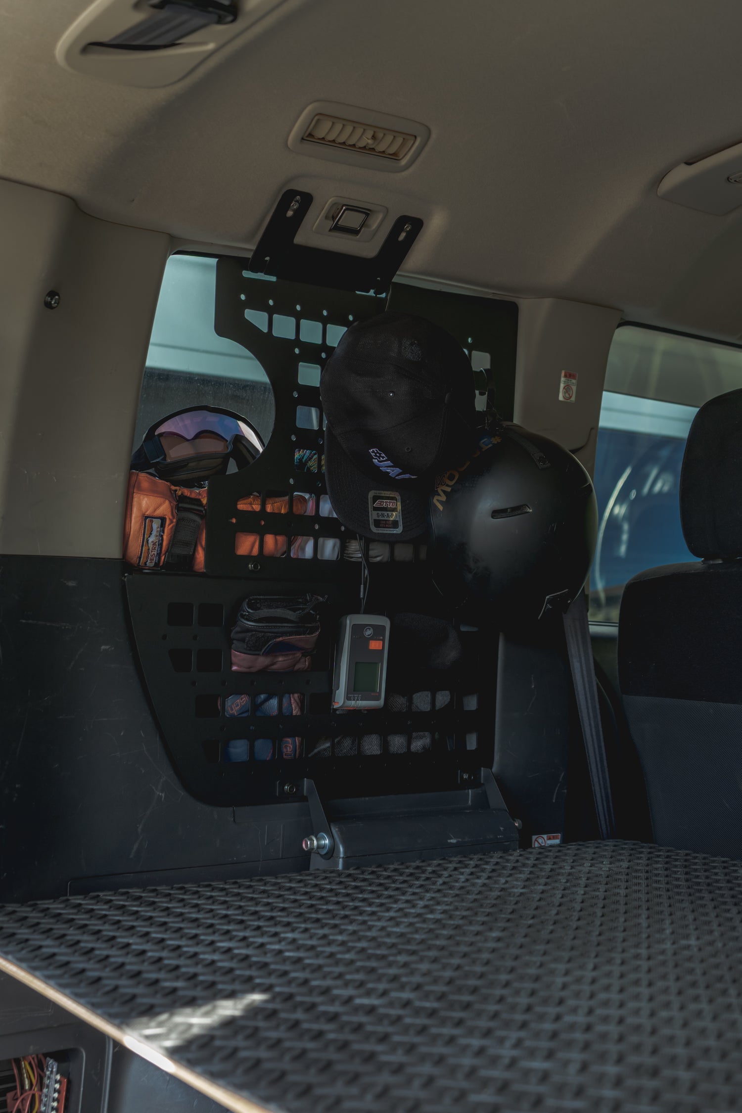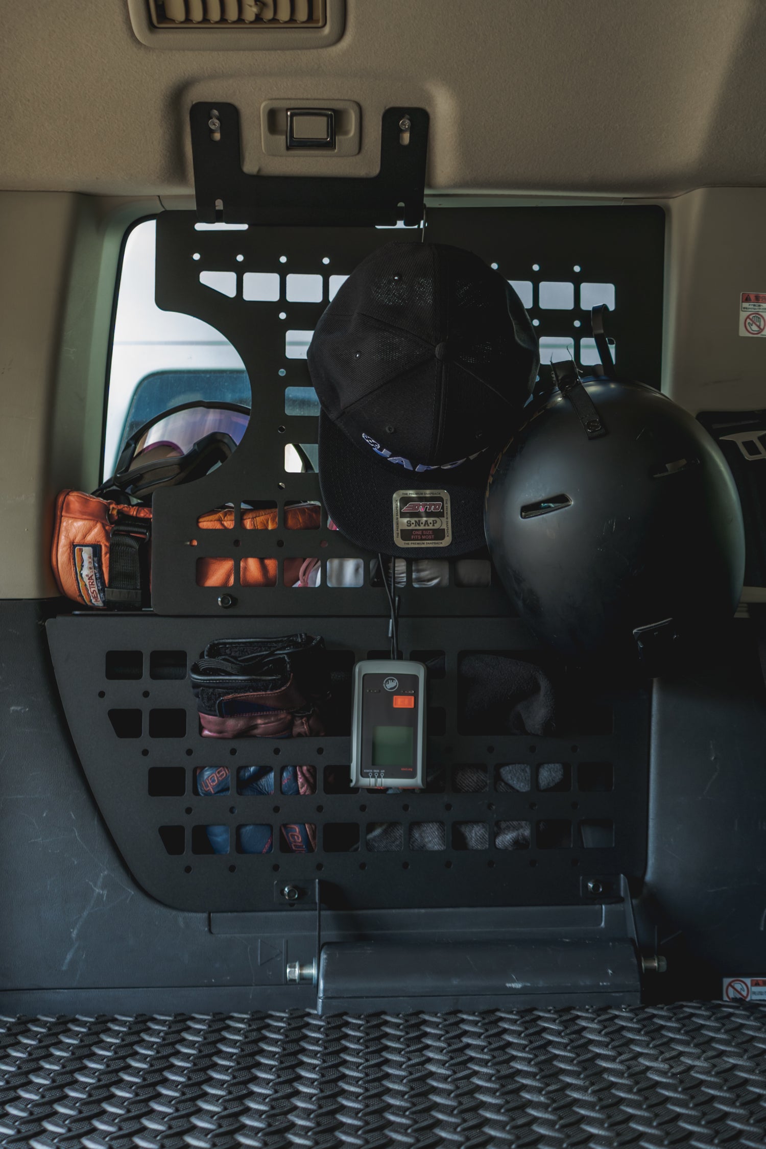 グローブ、ゴーグル、キャップ、小物類などをすぐ手の届く位置に整理して収納可能。